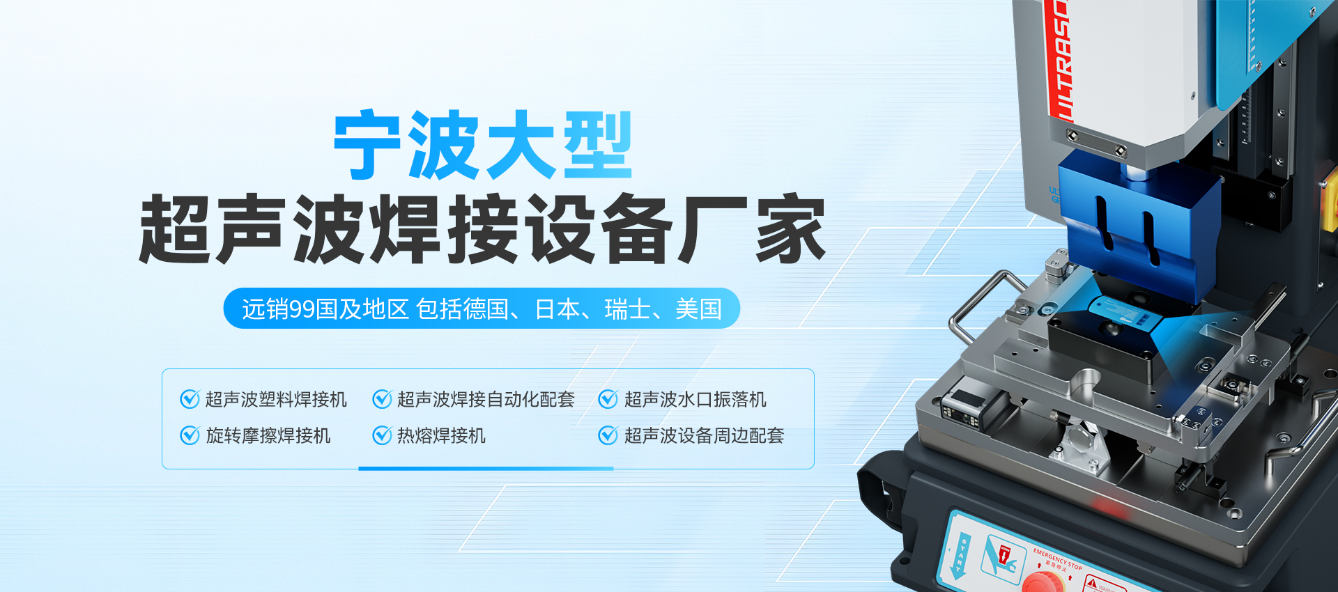 寧波鄞州重信機械設備有限公司LINGKEULTRASONICS靈科超聲波寧波服務中心,從事超聲波設備的生產開發、銷售及維修服務,產品包括伺服超聲波塑焊機、超聲波焊接自動化配套、超聲波水口振落機、旋轉摩擦焊接機、熱熔焊接機、超聲波清洗機、超聲波模具等,并可為客戶定制設計各類非標機寧波鄞州重信機械設備有限公司。